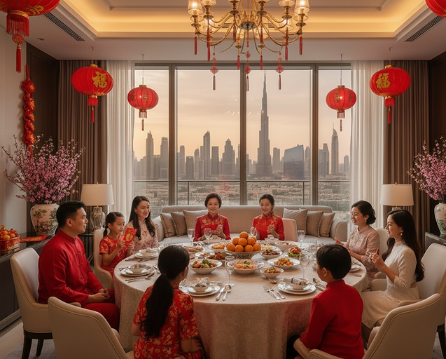 Chinese New Year gatherings in Dubai tend to be more intimate than in some other countries. Homes are typically not supported by large teams of staff during events.